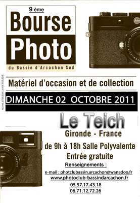 9 ème bourse photo du Teich Hervé Mirabail / 30 septembre 2011 Dimanche prochain 02 Octobre, 9 ème bourse photo du Teich Peut être des affaires à faire …Â